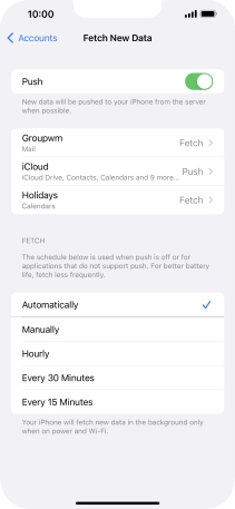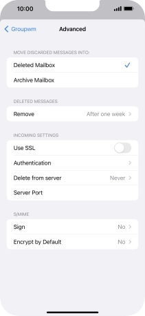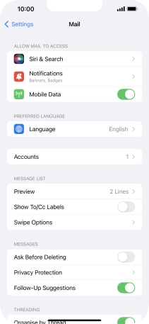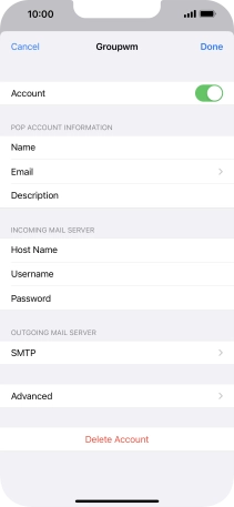 Press the required email account and follow the instructions on the screen to select settings for the specific account.