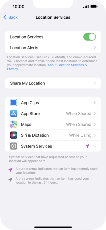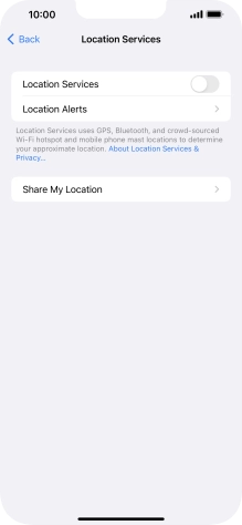 Press the indicator next to "Location Services" to turn the function on or off.