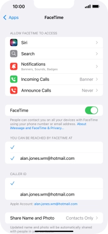 Press the required setting below "YOU CAN BE REACHED BY FACETIME AT".