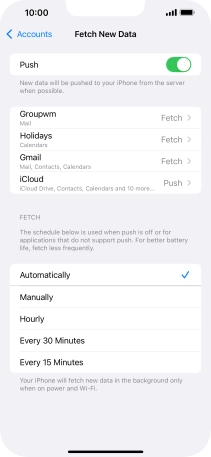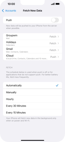 Press the required email account and follow the instructions on the screen to select settings for the specific account.