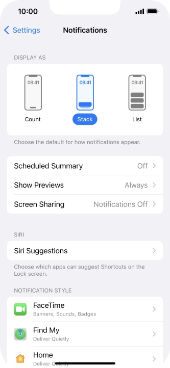 3 Select setting for notification preview