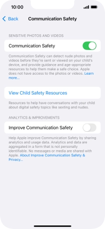 Press the indicator next to "Communication Safety" to turn the function on or off.