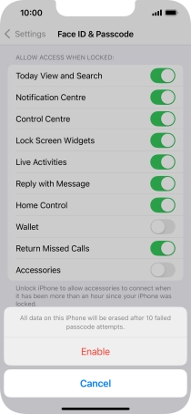2 Turn on use of phone lock code