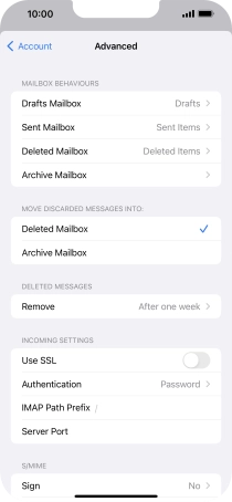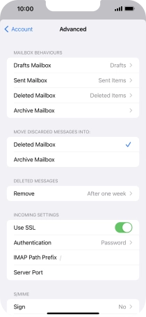 Press the required email account and follow the instructions on the screen to select settings for the specific account.