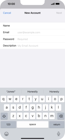 If this screen is displayed, you email account has been recognised and set up automatically. Follow the instructions on the screen to key in more information and finish setting up your phone.