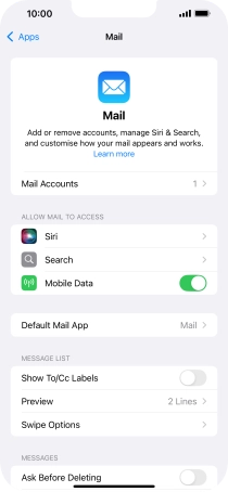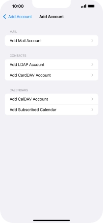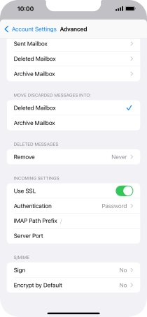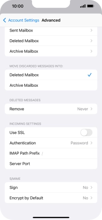 Press the required email account and follow the instructions on the screen to select settings for the specific account.