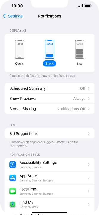 Press the indicator next to "Scheduled Summary" to turn on the function and follow the instructions on the screen to set the notification summary.