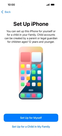 If your phone will be used by a child below the age of 13, follow the instructions on the screen to set up an Apple ID for the child.