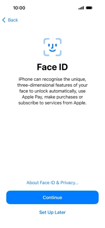 Follow the instructions on the screen to turn on use of Face ID or press Set Up Later.