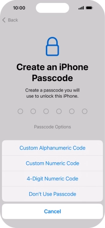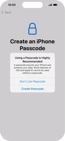 Follow the instructions on the screen to turn on use of phone lock code or press Don't Use Passcode.
