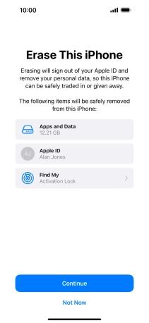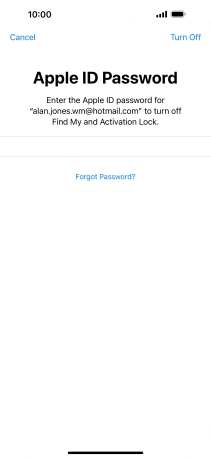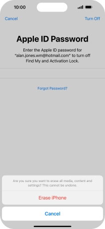Key in the password for your Apple ID and press Erase iPhone. Wait a moment while the factory default settings are restored. Follow the instructions on the screen to set up your phone and prepare it for use.