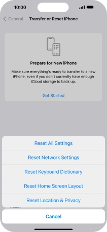 Restore factory default settings on your Apple iPhone 14 Pro Max iOS 16.0