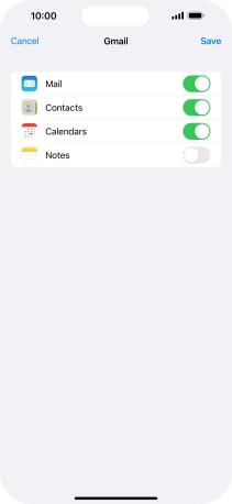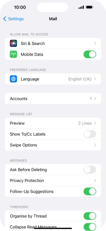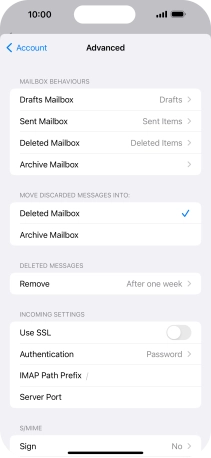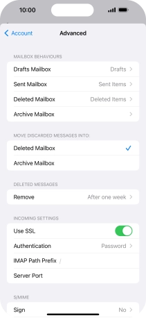Press the required email account and follow the instructions on the screen to select settings for the specific account.