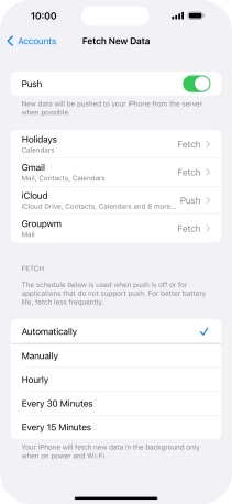 18. Select setting for retrieval of new email messages