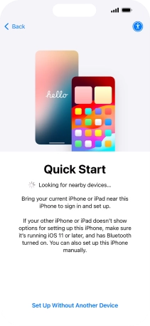 Follow the instructions on the screen to transfer content from another device running iOS 11 or later or press Set Up Without Another Device.