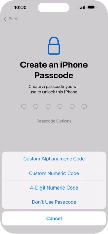 Follow the instructions on the screen to turn on use of phone lock code or press Don't Use Passcode.