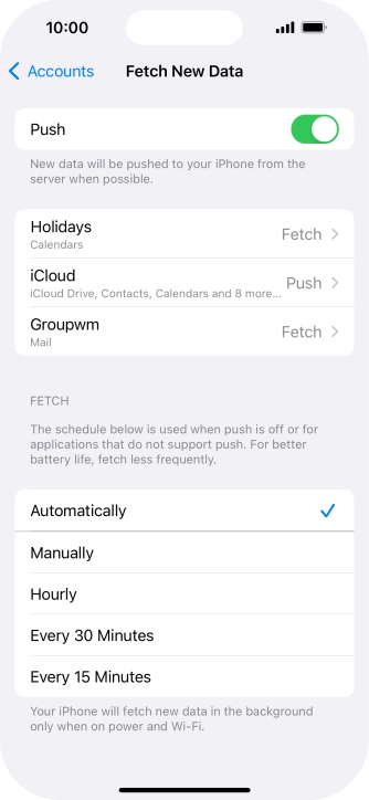 18. Select setting for retrieval of new email messages