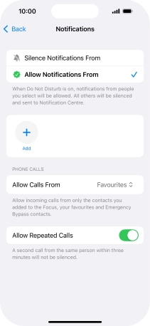 Press Apps and follow the instructions on the screen to select which apps you would like to receive notifications from when Do Not Disturb is turned on.