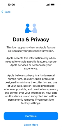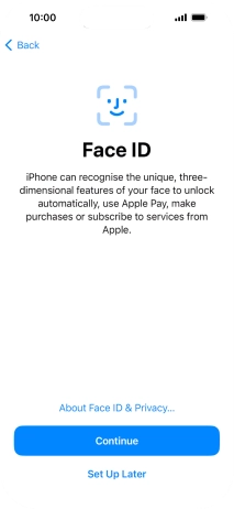 Follow the instructions on the screen to turn on use of Face ID or press Set Up Later.