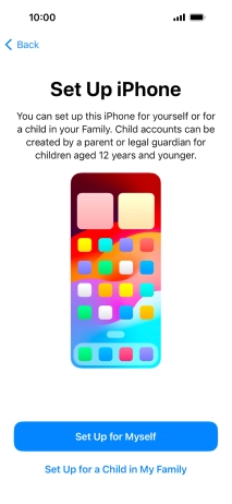 If your phone will be used by a child below the age of 13, follow the instructions on the screen to set up an Apple ID for the child.