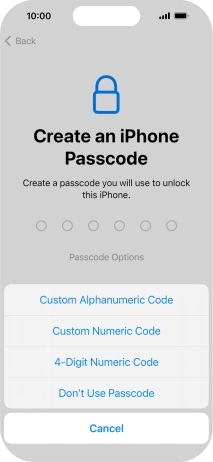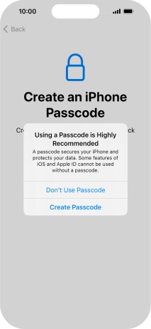 Follow the instructions on the screen to turn on use of phone lock code or press Don't Use Passcode.