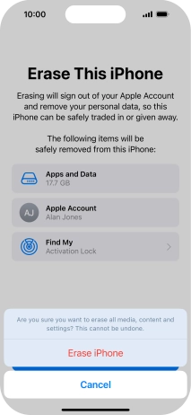 Key in the password for your Apple ID and press Turn Off. Wait a moment while the factory default settings are restored. Follow the instructions on the screen to set up your phone and prepare it for use.