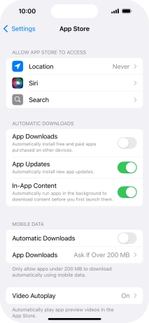 Press the indicator next to "App Downloads" to turn the function on or off.