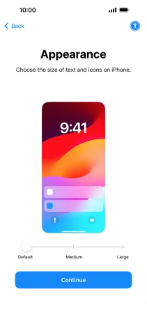 Select the required text and icon size on your phone and press Continue.