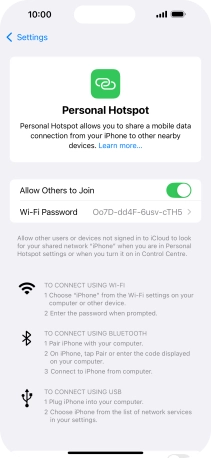 5. Establish connection to personal hotspot from another device