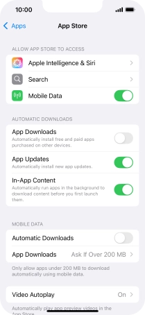 Press the indicator next to "Automatic Downloads" to turn the function on or off.