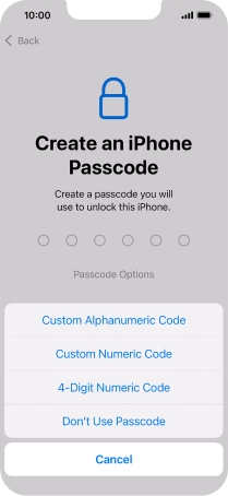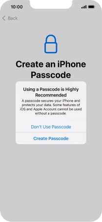 Follow the instructions on the screen to turn on use of phone lock code or press Don't Use Passcode.