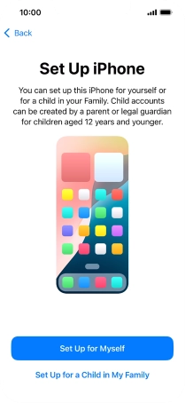 If your phone will be used by a child below the age of 13, follow the instructions on the screen to set up an Apple ID for the child.