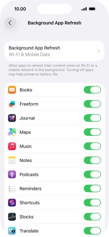 To turn on background refresh of apps using mobile network, press Wi-Fi & Mobile Data.