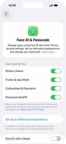 You can use your Face ID to turn off the phone lock code, allow access to apps and authorise payments.