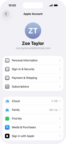 Press Apple Account.