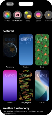 Press Customise and follow the instructions on the screen to customise the selected lock screen.
