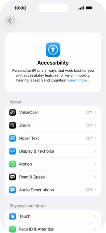 You can select different settings for phone interaction control, e.g. AssistiveTouch, Voice Control, Eye Tracking and Camera Control making it easier to navigate your phone.