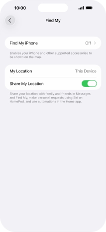 Press the indicator next to "Send Last Location" to turn the function on or off.