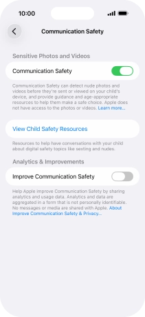 Press the indicator next to "Communication Safety" to turn the function on or off.