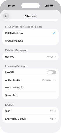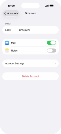 Press the required email account and follow the instructions on the screen to select settings for the specific account.