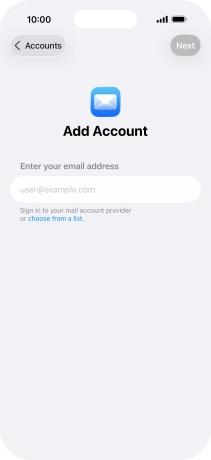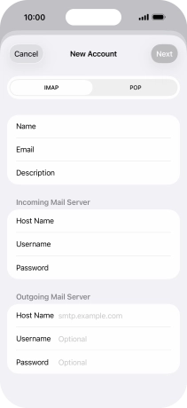 If this screen is displayed, you email account has been recognised and set up automatically. Follow the instructions on the screen to key in more information and finish setting up your email account.