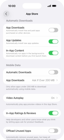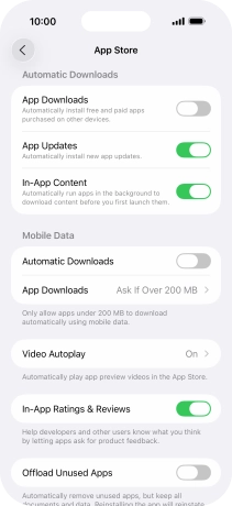 Press the indicator next to "App Downloads" to turn the function on or off.