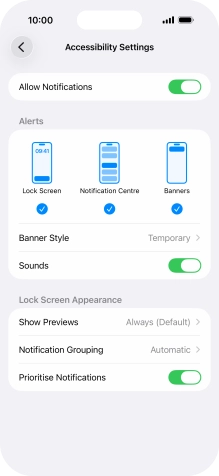 Press the indicator next to "Prioritise Notifications" to turn the function on or off.