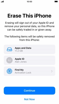 Key in the password for your Apple ID and press Erase iPhone. Wait a moment while the factory default settings are restored. Follow the instructions on the screen to set up your phone and prepare it for use.