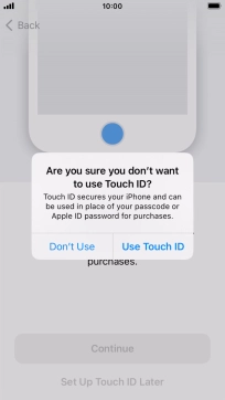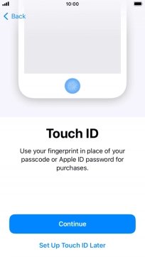 Follow the instructions on the screen to turn on use of Touch ID or press Set Up Touch ID Later.