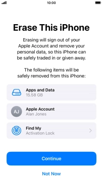 Key in the password for your Apple ID and press Turn Off. Wait a moment while the factory default settings are restored. Follow the instructions on the screen to set up your phone and prepare it for use.