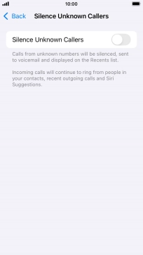 Press the indicator next to "Silence Unknown Callers" to turn the function on or off.