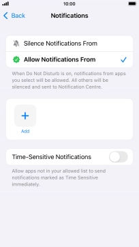 Press the indicator next to "Time-Sensitive Notifications" to turn display of timed notifications on or off when Do Not Disturb is turned on.