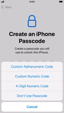 Follow the instructions on the screen to turn on use of phone lock code or press Don't Use Passcode.