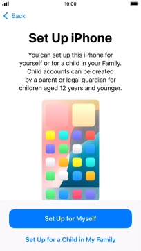 If your phone will be used by a child below the age of 13, follow the instructions on the screen to set up an Apple ID for the child.